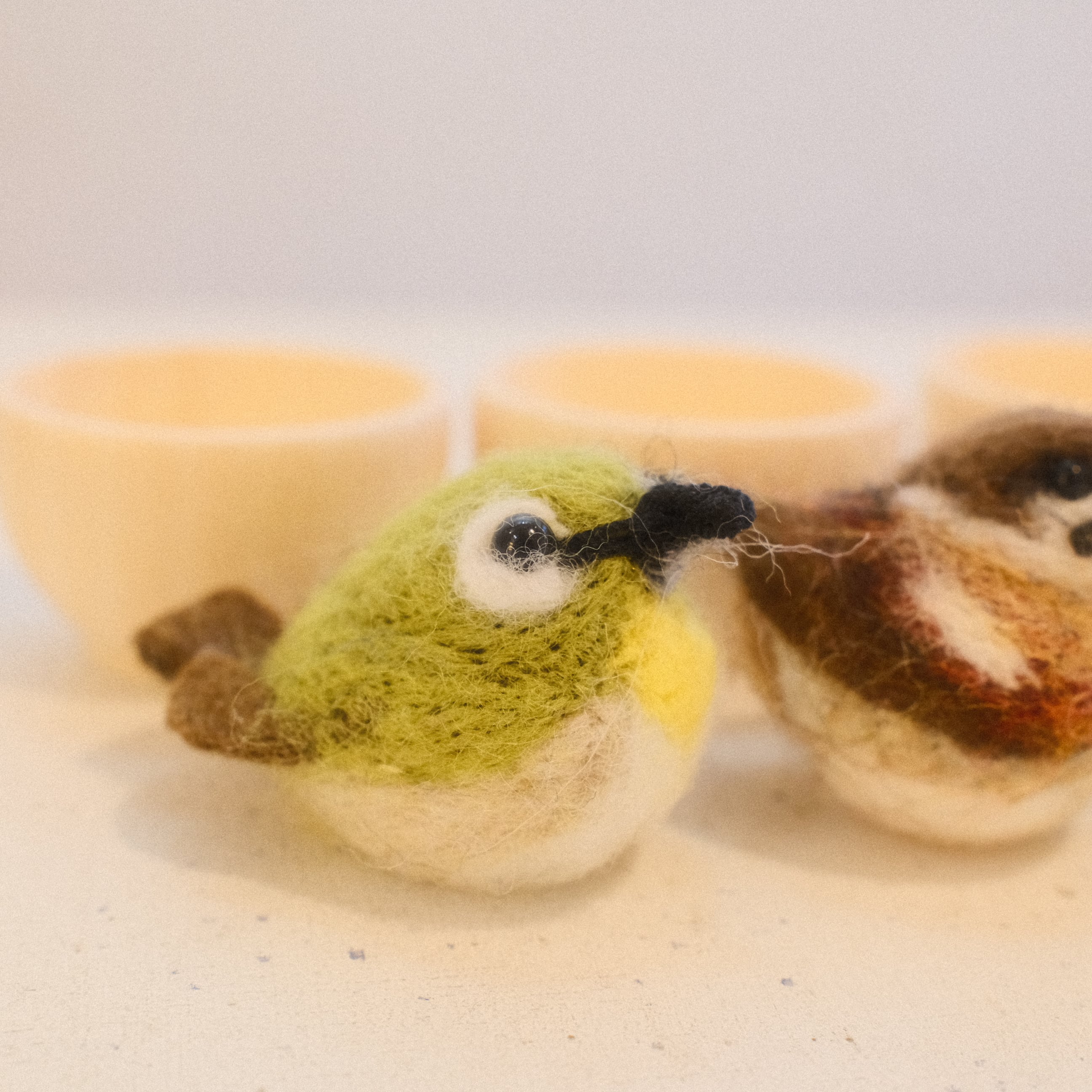 可愛らしい小鳥たちを、羊毛で生き生きと表現する作家