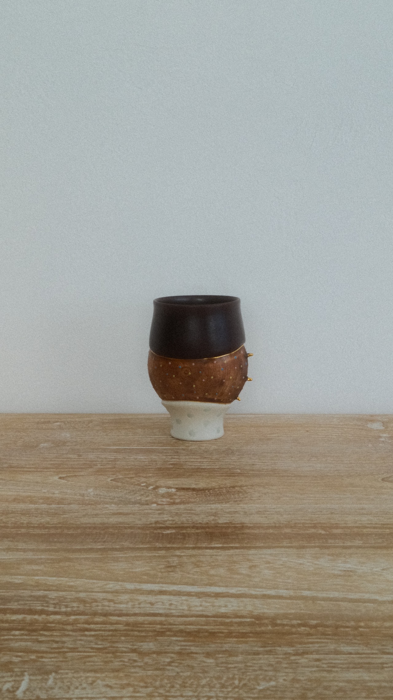 「Veil」シリーズをはじめ、ガラス質の釉薬がとろりと流れる美しい景色と、光を受けて輝く繊細な貫入(かんにゅう)が魅力です。 伝統的な技術をベースにしながらも、現代の食卓に馴染むモダンなフォルムや、星空のようなドット模様など、静かな華やかさを纏っています。