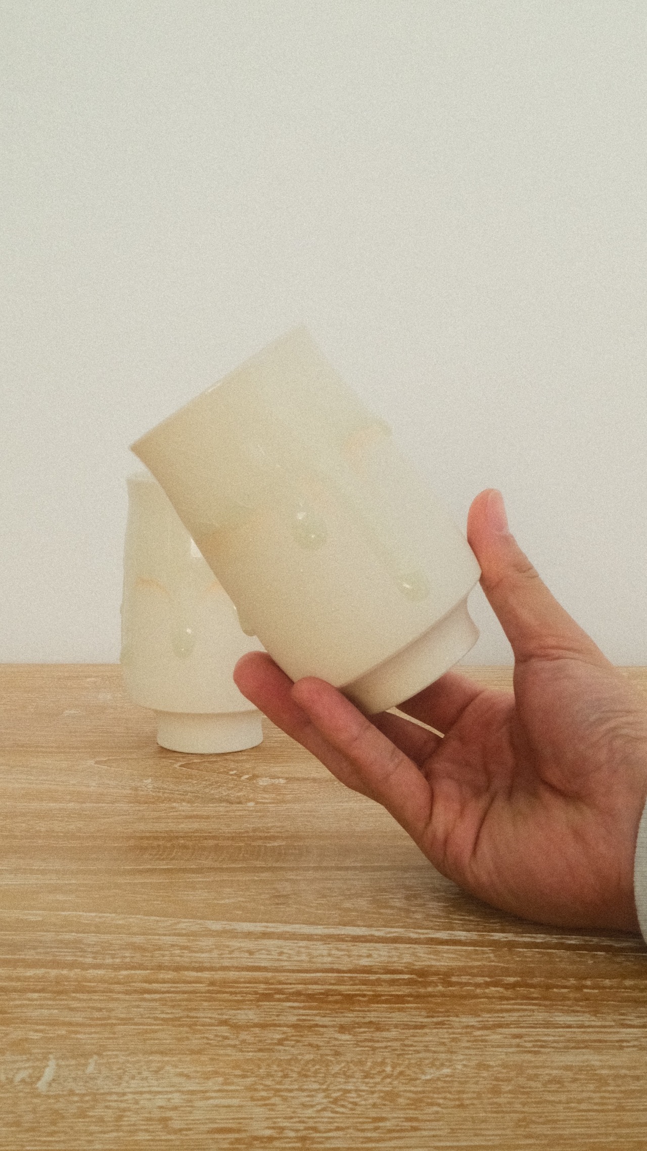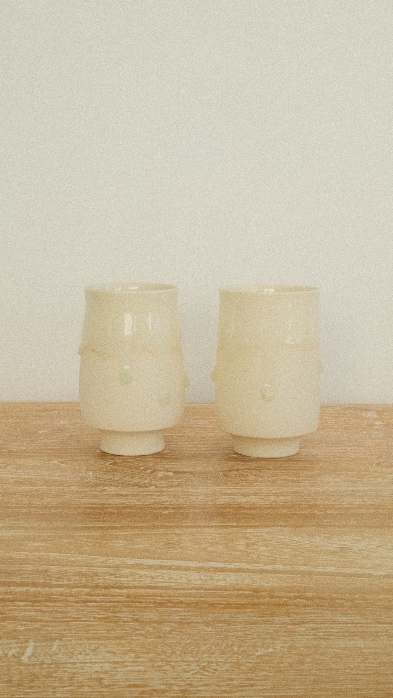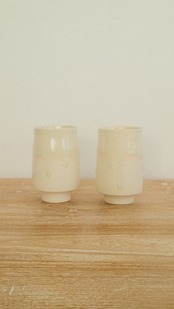 「Veil」シリーズをはじめ、ガラス質の釉薬がとろりと流れる美しい景色と、光を受けて輝く繊細な貫入(かんにゅう)が魅力です。 伝統的な技術をベースにしながらも、現代の食卓に馴染むモダンなフォルムや、星空のようなドット模様など、静かな華やかさを纏っています。