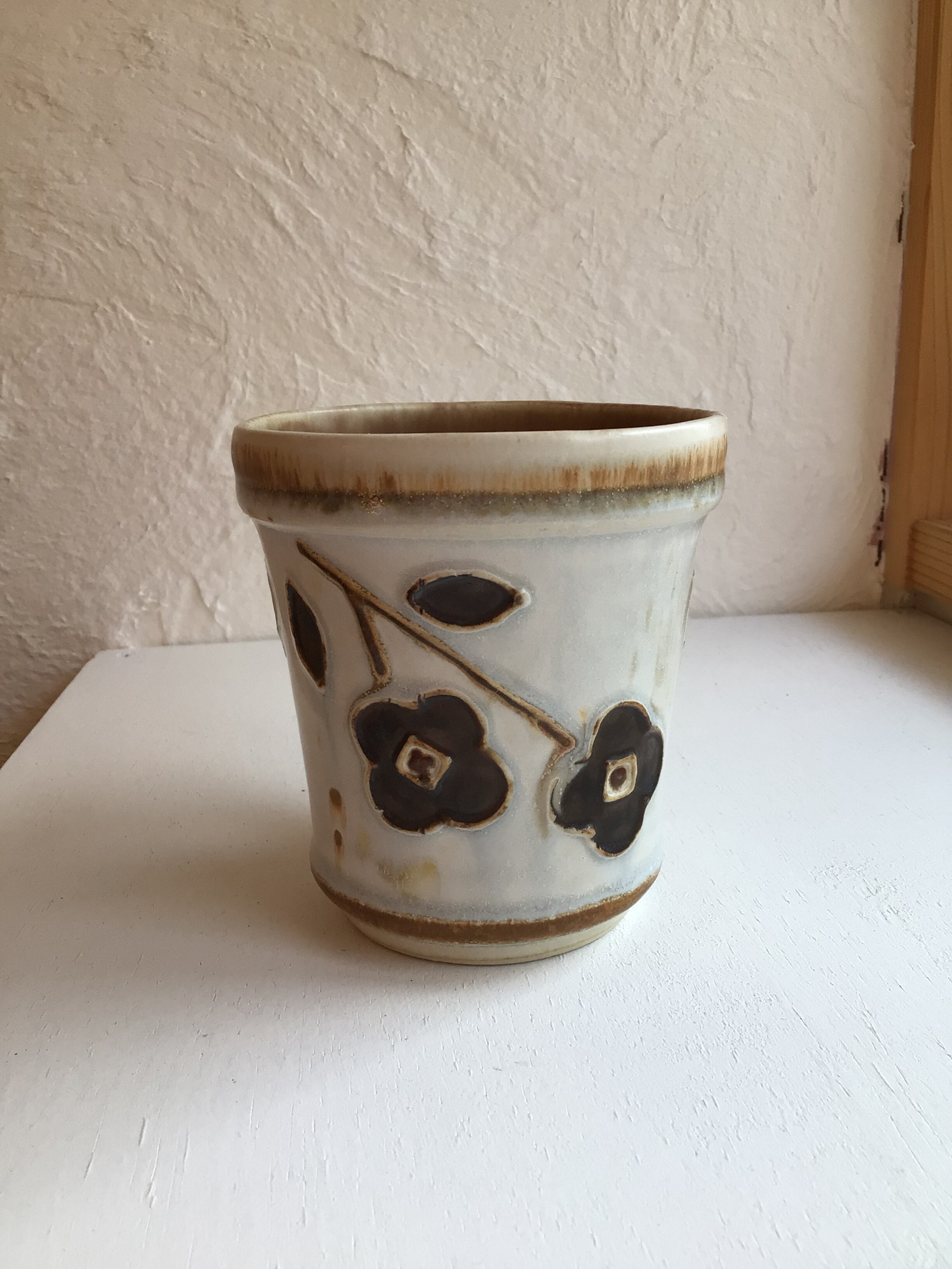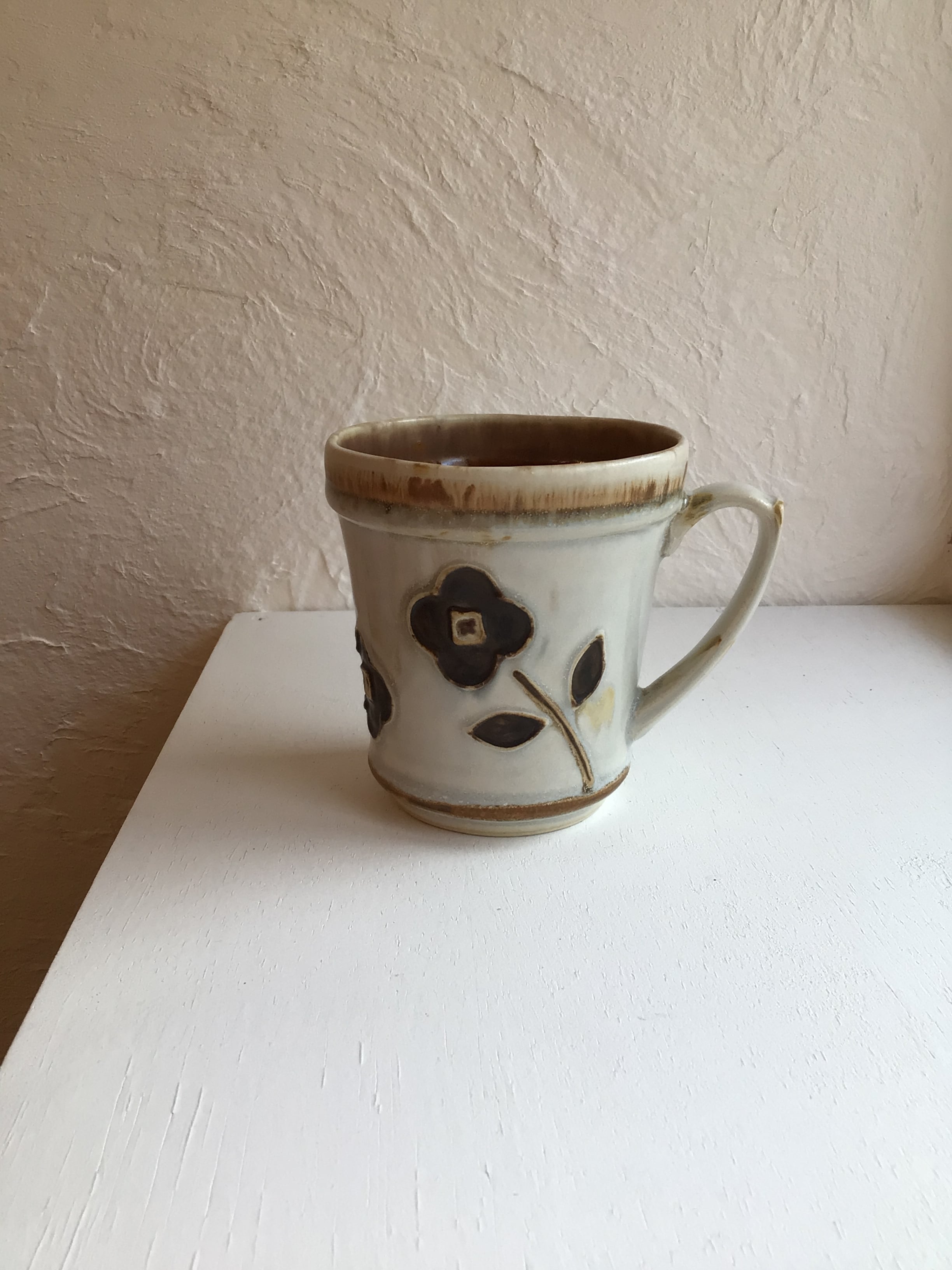 茶色、アイボリー色の釉薬に、内側には茶色の釉薬。落ち着いた色合いのマグカップに仕上がっています。