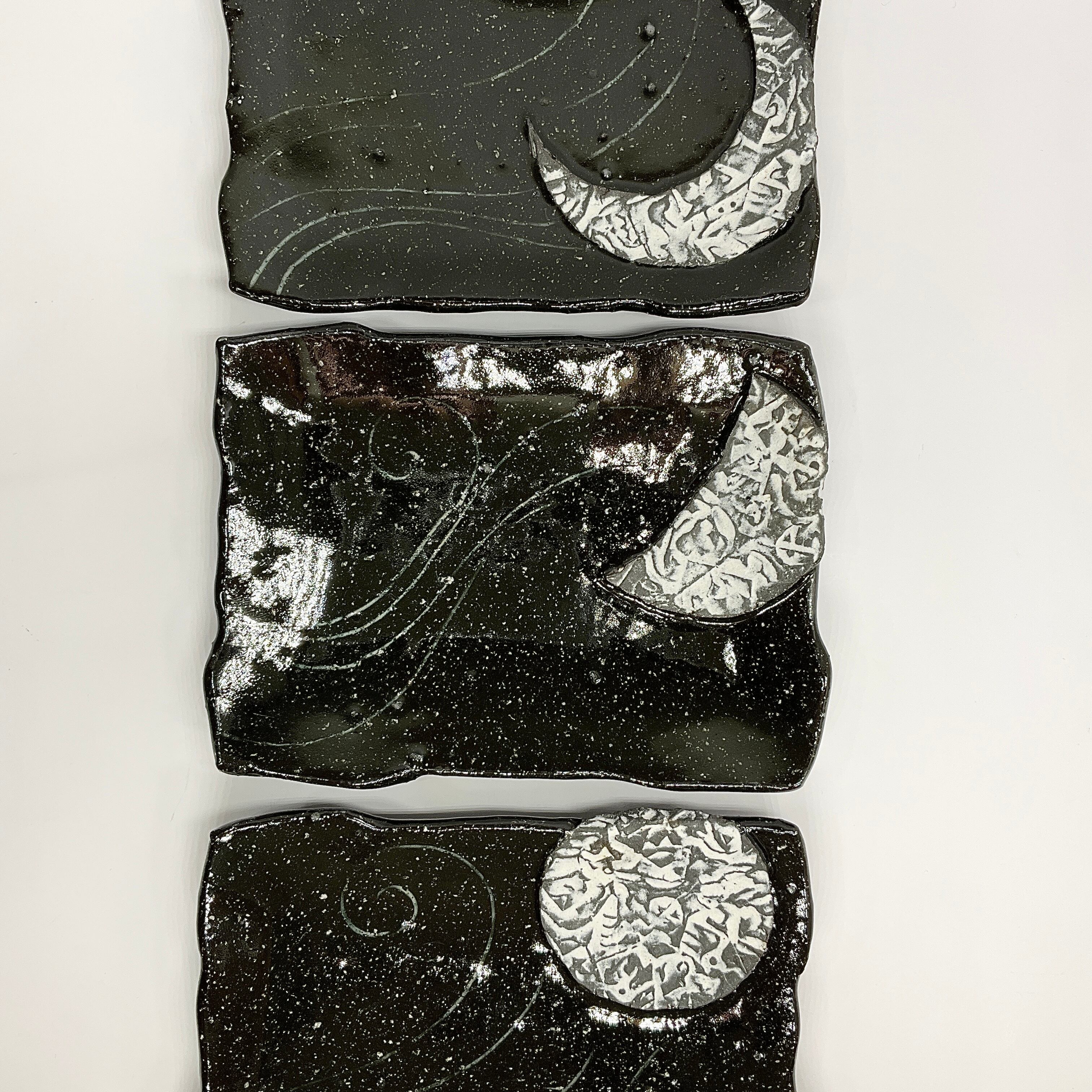 印花月紋皿黒 肥後博己作 300-1,300-2,300-3