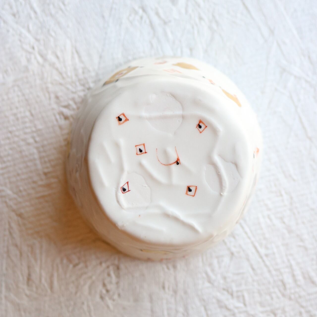 一つ一つの模様が違うデザインの凝りよう。模様だけでなく側面は、いっちんでちょっとした凹凸をつけて模様を描いています。