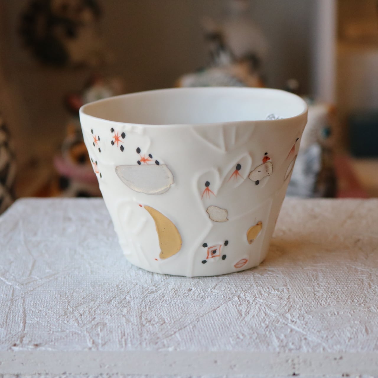 浜坂尚子の金銀に彩られた作品の蕎麦猪口です。