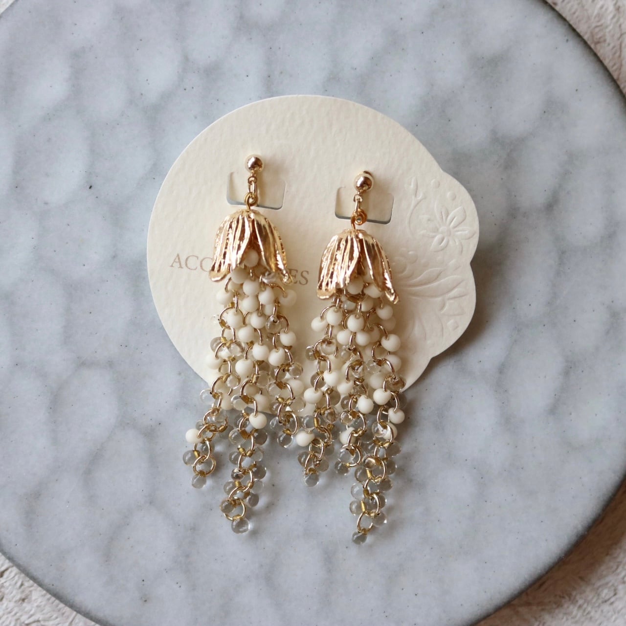 今回はお花の房をイメージしたフラワーアクセサリーに。