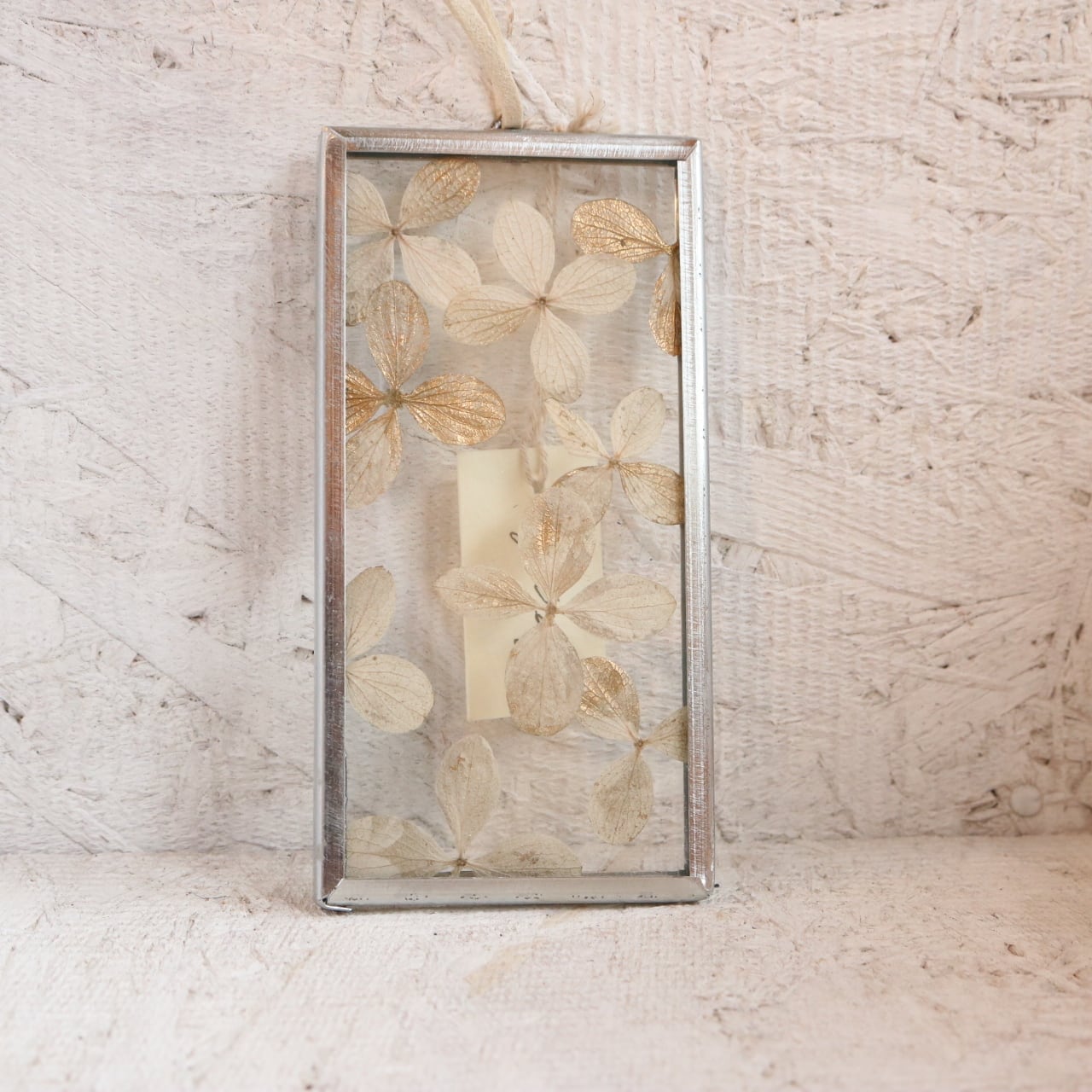 押花をガラスに閉じ込めたunder glassシリーズのステンドグラス作品。