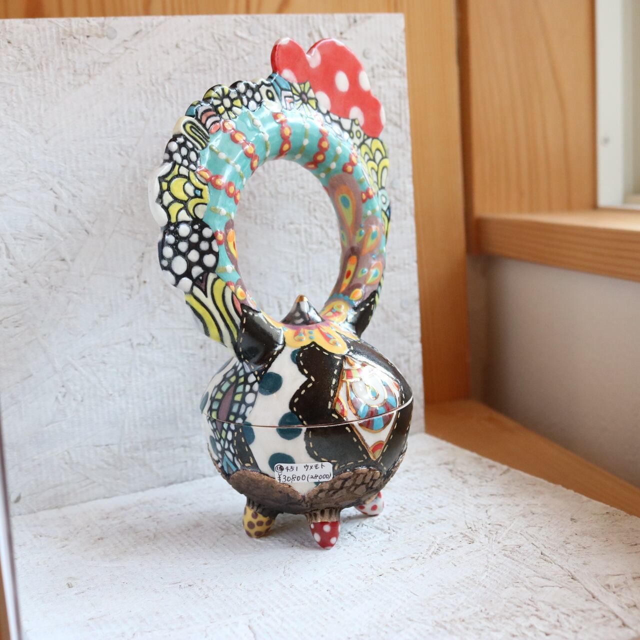 陶芸家:梅本依里さんのカラフルな絵付けと個性的な形が特徴的な陶器です。