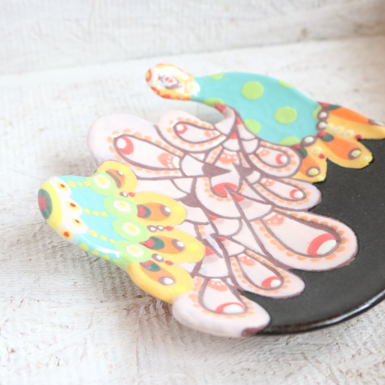 陶芸家:梅本依里さんのカラフルな絵付けと個性的な形が特徴的な陶器です。