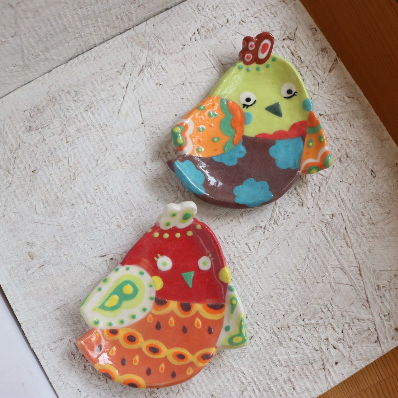 陶芸家:梅本依里さんのカラフルな絵付けと個性的な形が特徴的な陶器です。