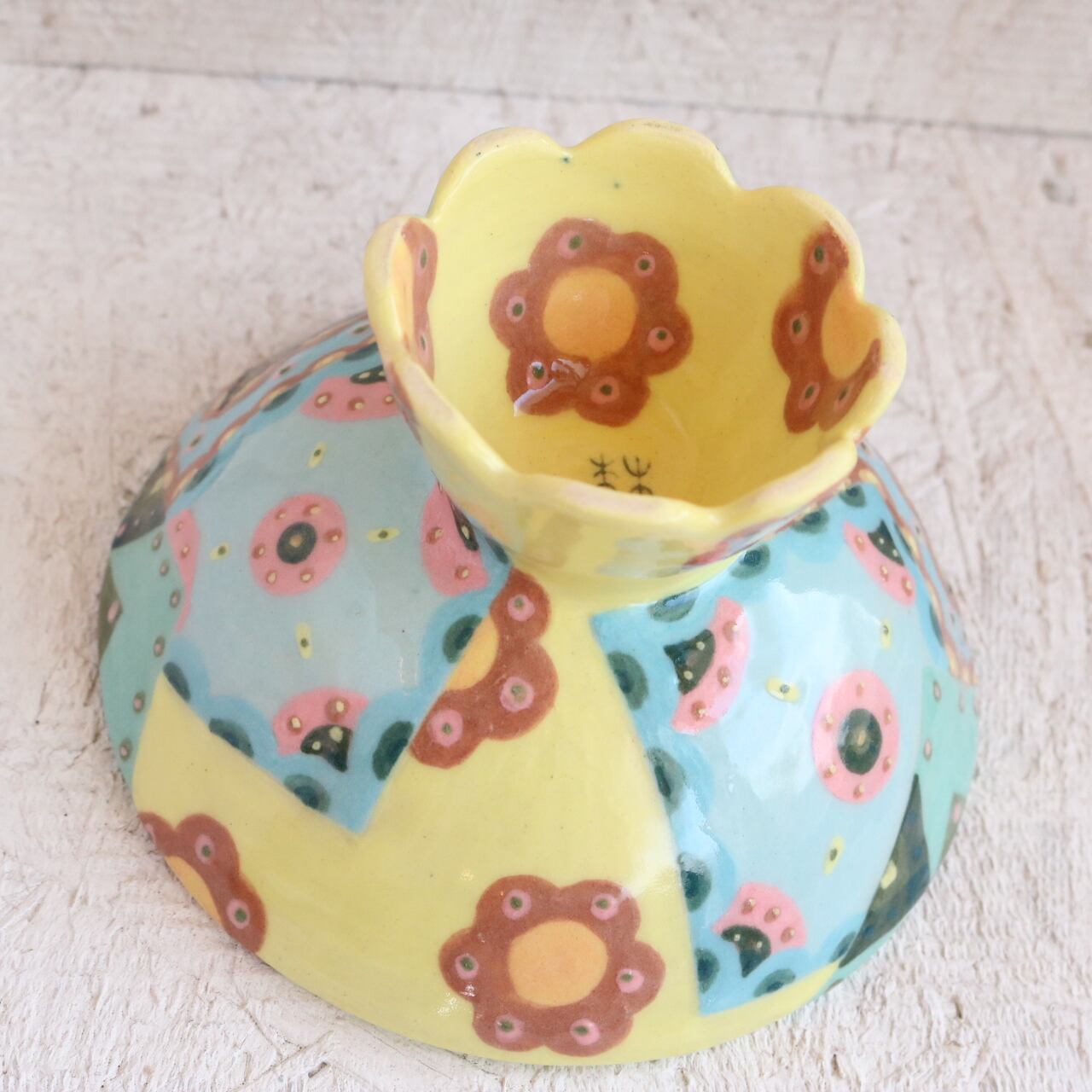 陶芸家:梅本依里さんのカラフルな絵付けと個性的な形が特徴的な陶器です。