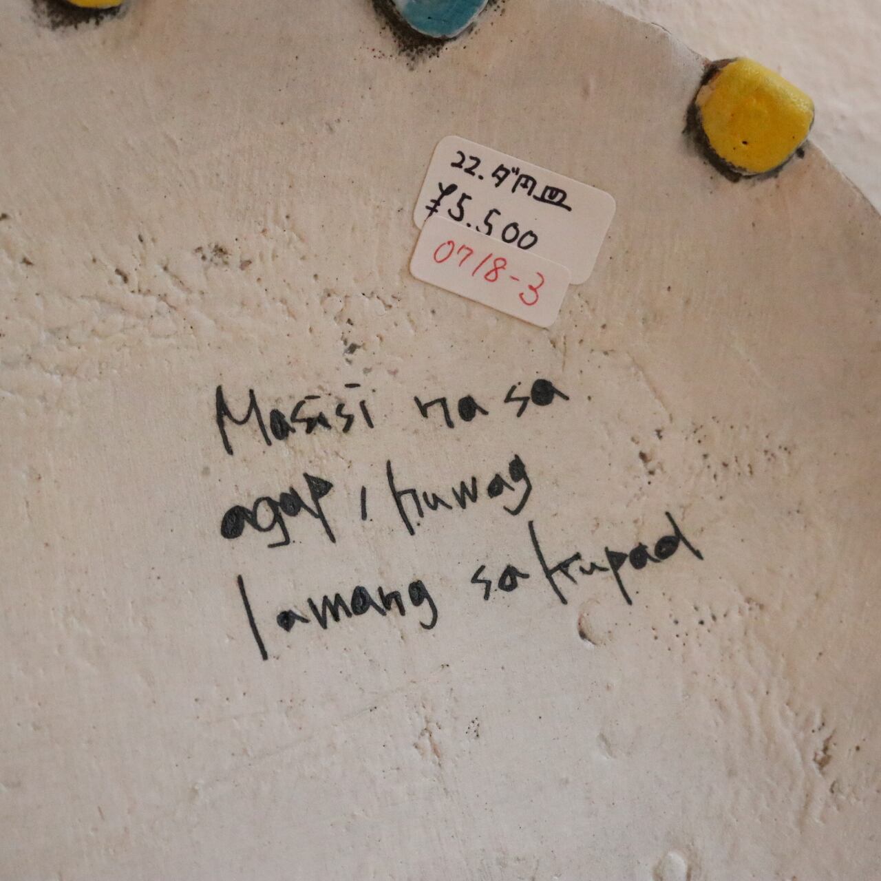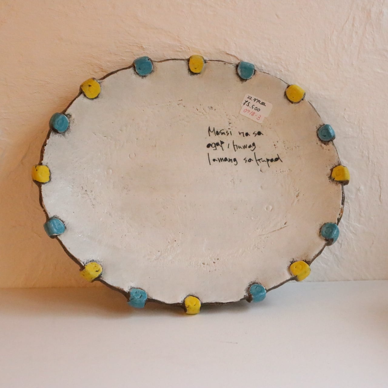 縁についたカラフルな装飾がついた、眺めてるだけでも楽しくなってしまいそうなお皿。