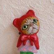 ネコずきん ブローチ&額縁 肥後博己作 0728-18