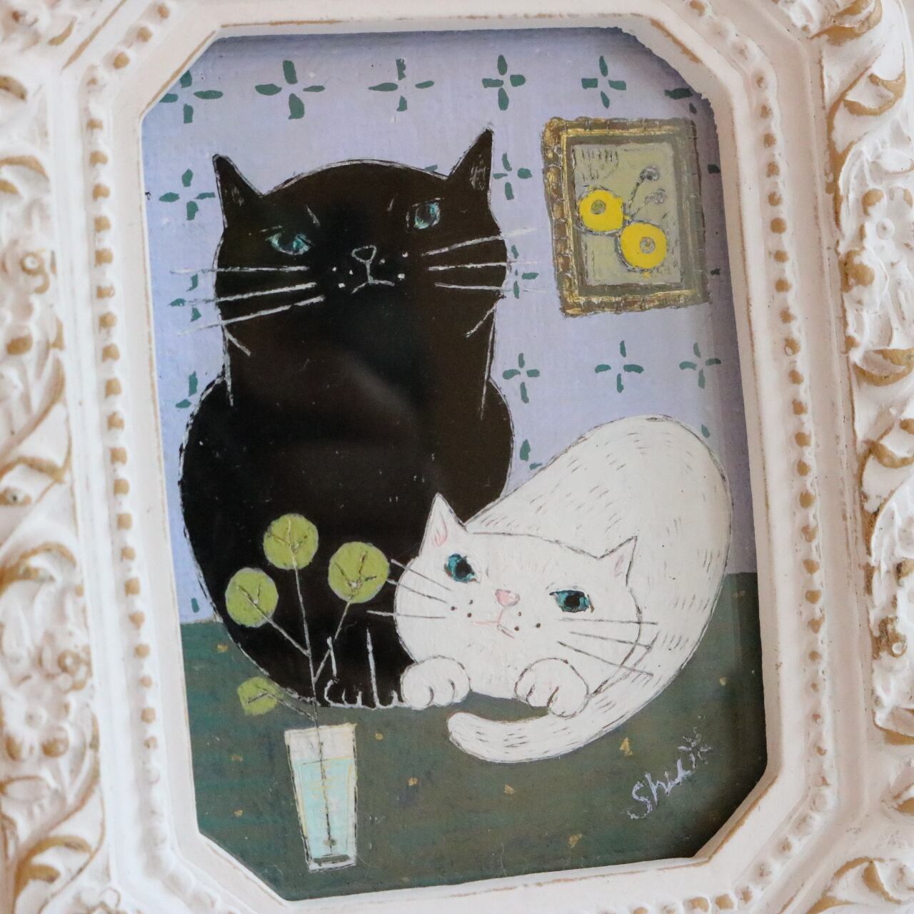 蝶々の絵が飾ってあり、可愛い白猫と黒猫かわ描かれている"蝶ちょの絵"
