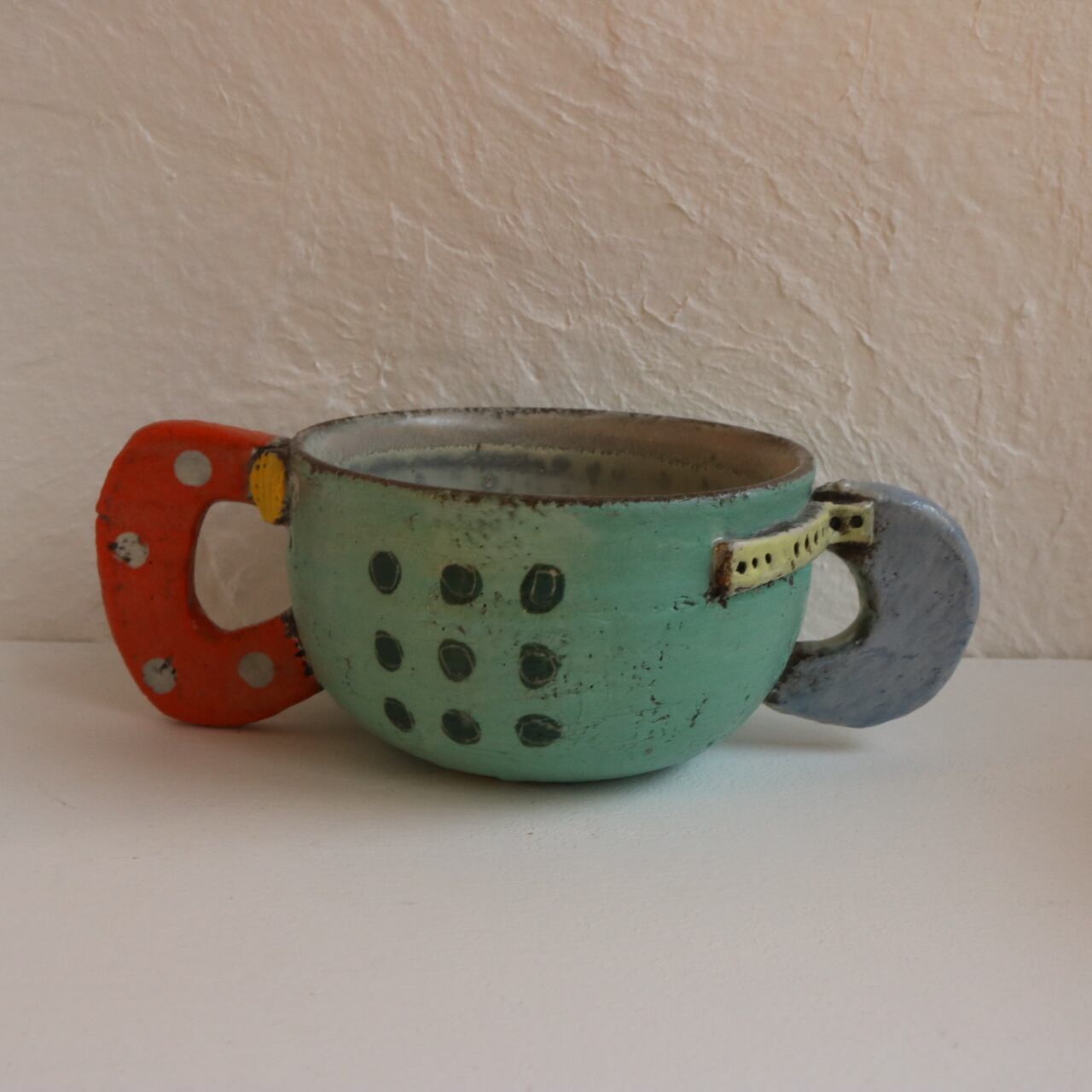 鮮やかな色彩と一点一点のデザインが違うこだわりのあるスープマグ。