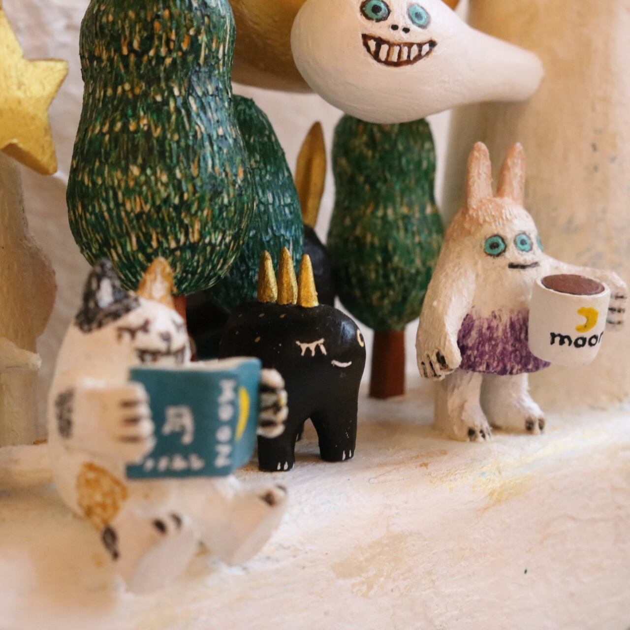 ひとつひとつ木彫りで生まれた住人は全て一点もの。