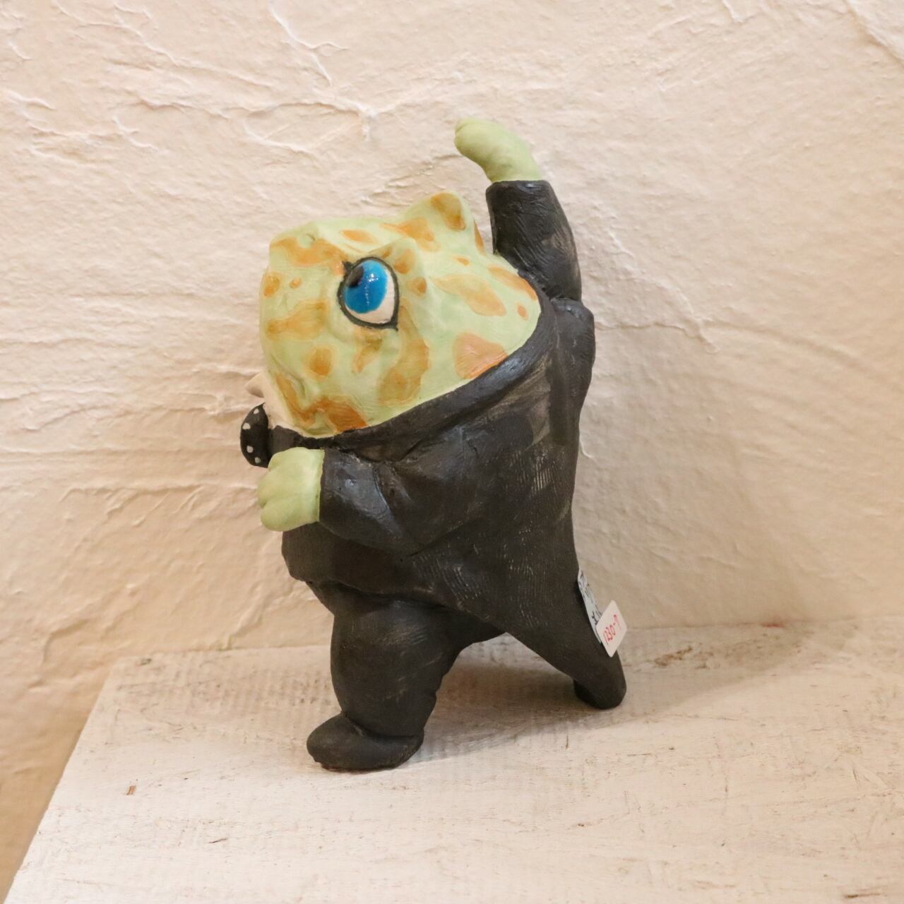 手作りの細かな技術で、ツノガエルの表情や姿勢の一つ一つが再現されています。
