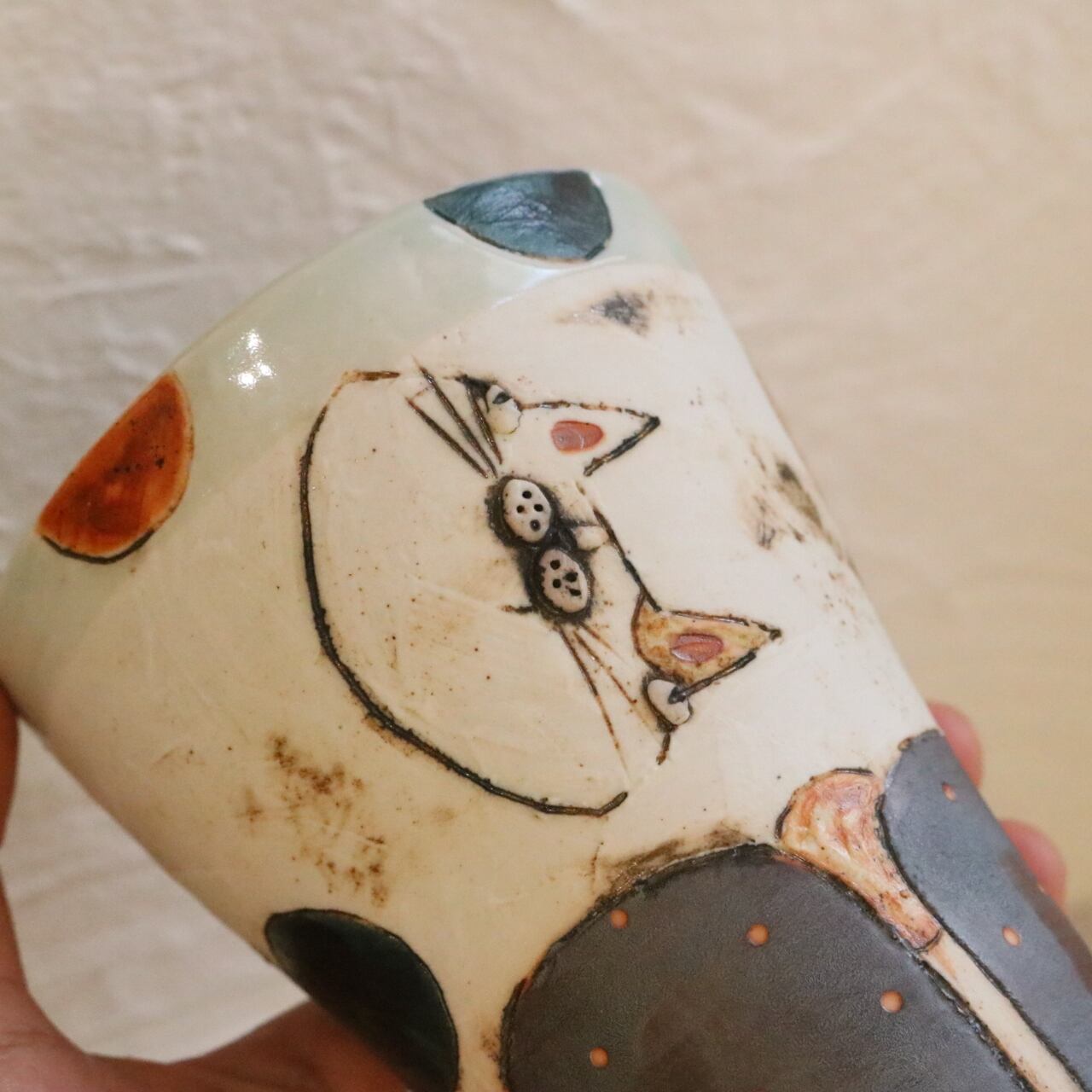 可愛い猫がクルッと回ったデザインのビールカップです。