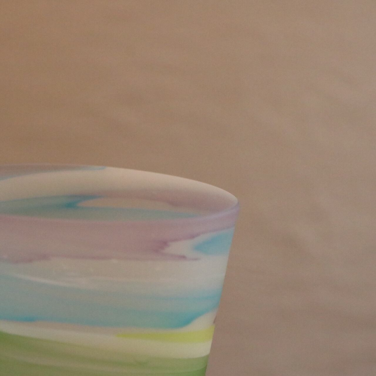 磨りガラス素材で手に馴染む感触は、一度使うと手放せなくなること間違いなしです。洗練されたデザインと色使いは、テーブルを彩り、飲み物を引き立てます。