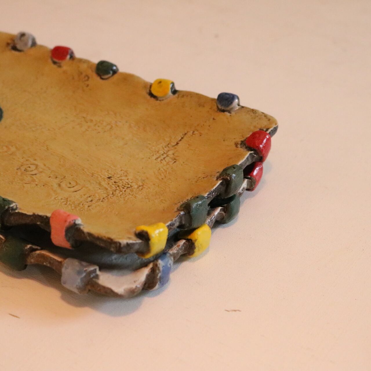 縁についたカラフルな装飾がついた、