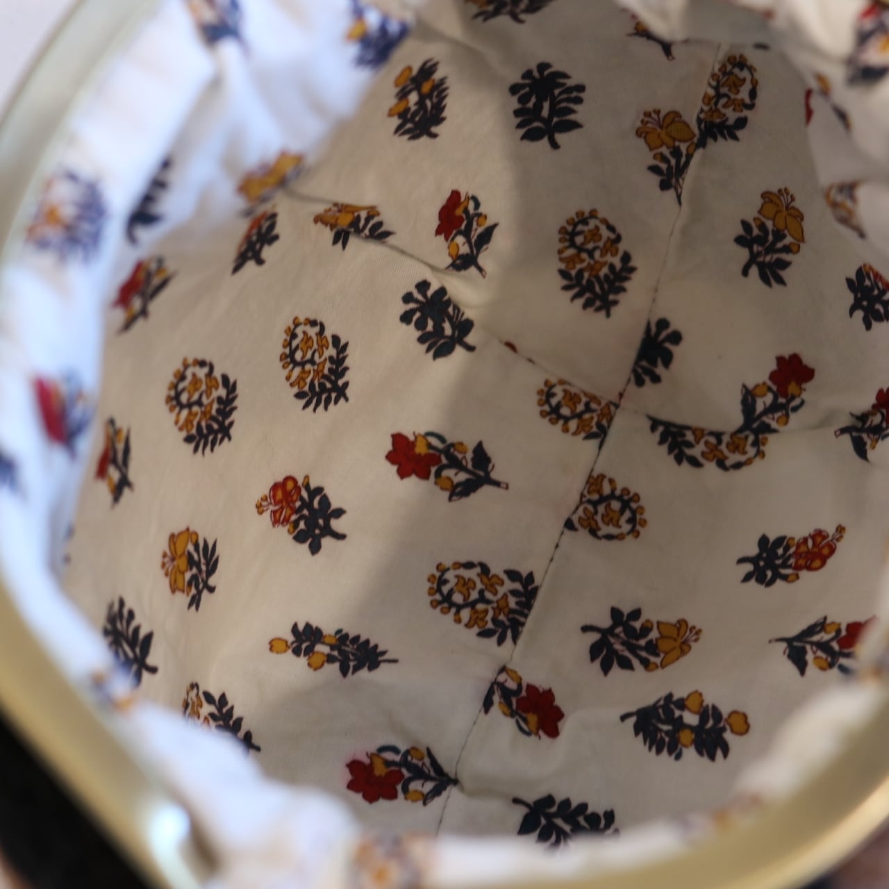 手編みのかぎ編みで丁寧に作られたポーチはふんわりとした風合いが特徴です。また、ビーズを使い、立体的に仕上げられたネ顔は存在感があり、周りの目を引きます。