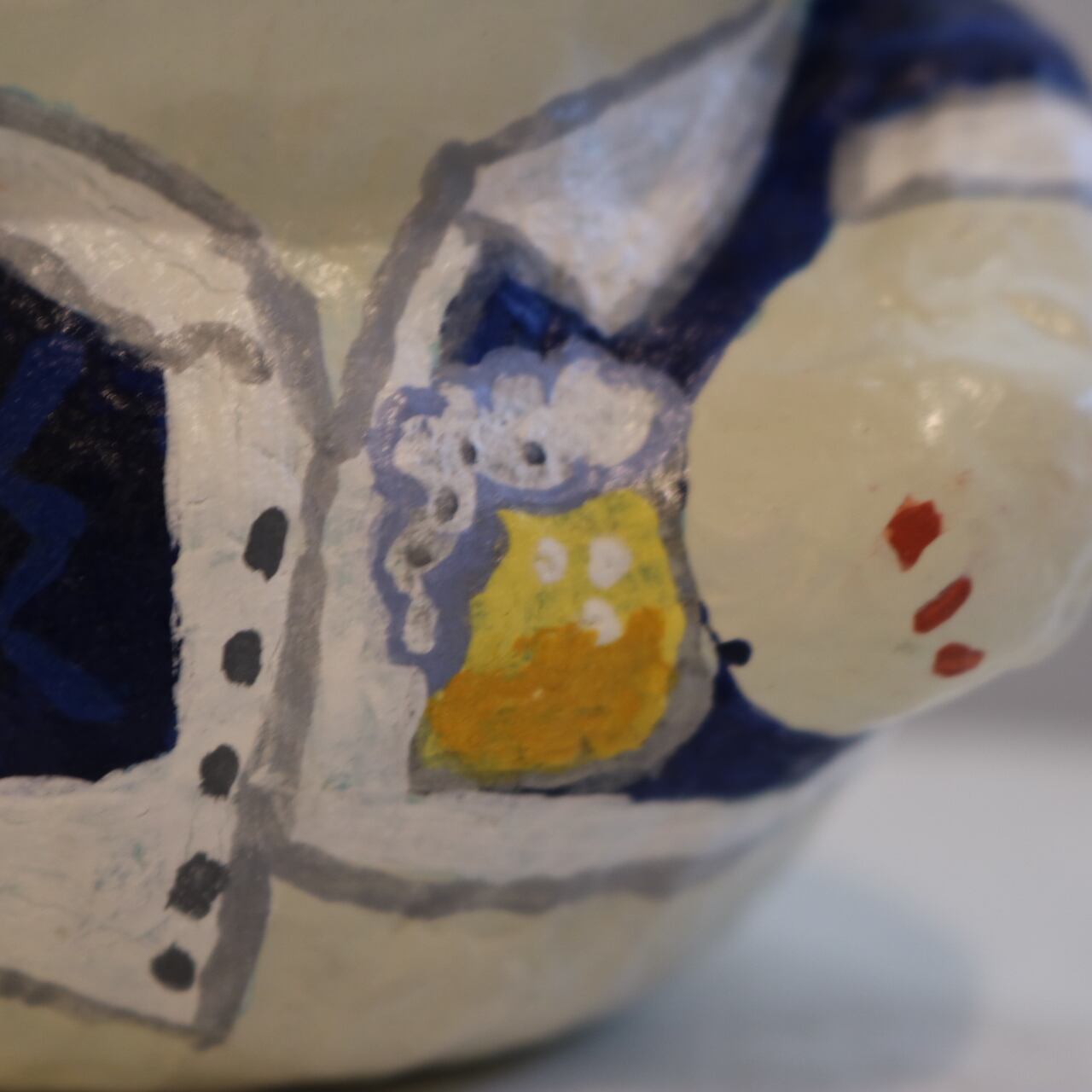 美大の通信大学に入学し、版画を専攻。木版画を学び、日本独自の芸術文化に興味が出て、民藝学を学び「用の美」や日常に溢れる美の考え方に感銘を受け、旅先で出逢った張子が魅力を感じ、制作を始める。